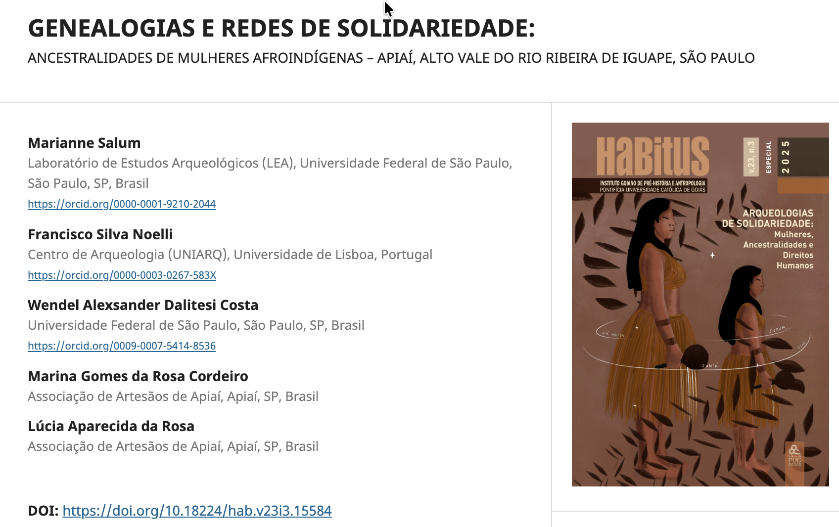 SALUM, Marianne; SILVA NOELLI, Francisco; ALEXSANDER DALITESI COSTA, Wendel; GOMES DA ROSA CORDEIRO, Marina; APARECIDA DA ROSA , Lúcia. (2026) GENEALOGIAS E REDES DE SOLIDARIEDADE: ANCESTRALIDADES DE MULHERES AFROINDÍGENAS – APIAÍ, ALTO VALE DO RIO RIBEIRA DE IGUAPE, SÃO PAULO
